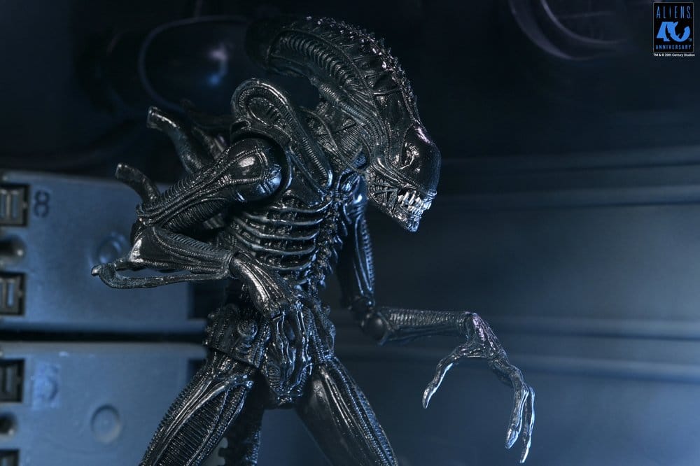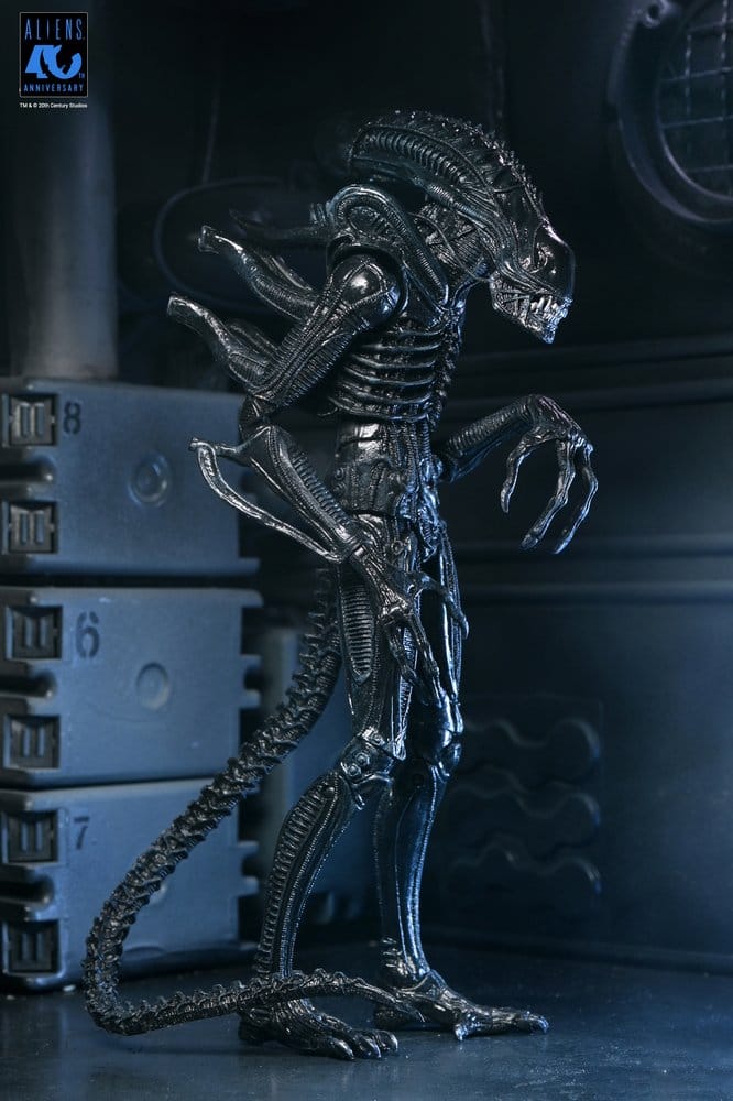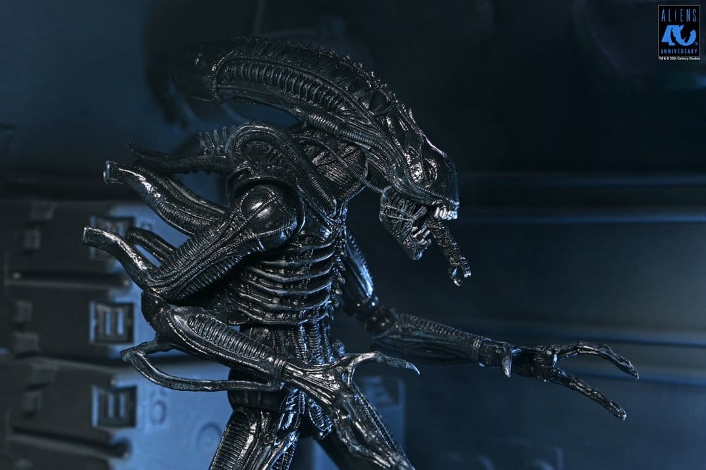 Feiern Sie 40 Jahre Aliens, die ikonische Fortsetzung von Regisseur James Cameron aus dem Jahr 1986! Diese spezielle Jubiläumsveröffentlichung markiert die dritte Aliens Xenomorph Warrior Actionfigur in NECAs Ultimate-Linie und kehrt mit einer schlanken, schleimigen und tiefschwarzen Deko zum natürlichen Erscheinungsbild der Kreatur im Film zurück. Mit einer Höhe von über 23 cm (im 7-Zoll-Maßstab) verfügt diese Figur über mehr als 30 Artikulationspunkte, einen biegsamen Drahtschwanz zum Posieren und einen aufklappbaren Kiefer mit ausfahrbarem Innenmaul. Sie enthält Zubehör wie einen Facehugger, einen Chestburster und einen offenen Ovomorph. Die Lieferung erfolgt in einer sammlerfreundlichen Deluxe-Fensterbox mit aufklappbarer Frontklappe. Ehren Sie das 40-jährige Jubiläum des Sci-Fi-Horror-Klassikers mit diesem Ultimate, perfekt zum Aufbau Ihrer Aliens Warrior-Armee!
