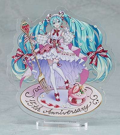 Zu „Character Vocal Series 01“ kommt diese detailreiche Actionfigur im „Nendoroid“-Design. Sie ist ca. 10 cm groß und wird mit weiterem Zubehör, austauschbaren Teilen sowie einem Acryl-Stand in einer Fensterbox geliefert.