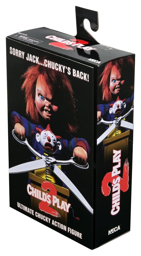 Aus dem Horrorklassiker Child’s Play 2 von 1990 kommt dein Freund bis zum Ende – Chucky ist zurück in Ultimate-Form! Diese voll bewegliche, 18 cm große Actionfigur erweckt Chuckys Aussehen aus der Fortsetzung mit bildschirmgenauen Details und einem Arsenal an Zubehör zum Leben. Chucky kommt mit fünf austauschbaren Köpfen, mehreren Händen, einem alternativen Unterarm, Lineal, Luftpumpe, Messer, Good Guy Schaufel, Schachtelteufel und Schere aus dem ikonischen Kinoposter und mehr. Ebenfalls enthalten ist eine maßstabsgetreue Child’s Play 2 Good Guy Box, perfekt, um deine Lieblings-Killerpuppe aufzubewahren. Füge diesen NECA Ultimate Chucky zu deiner Sammlung hinzu… was könnte schon schiefgehen? Kommt in einer sammlerfreundlichen Fensterbox-Verpackung mit aufklappbarer Frontklappe.