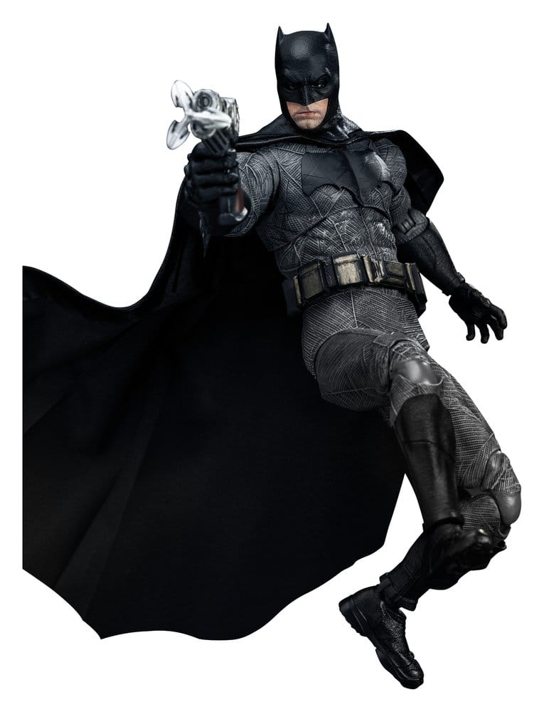 Die DAH-Serie von Beast Kingdom stellt Batmans ikonisches Erscheinungsbild aus Batman v Superman: Dawn of Justice originalgetreu nach. Der Anzug zeichnet sich durch ein dunkelgraues und schwarzes Farbschema aus, mit aufwendig detaillierter, stark texturierter Rüstung und dem charakteristischen schwarzen Fledermaus-Emblem auf der Brust, das einen erfahreneren, härteren und imposanteren Bruce Wayne verkörpert.
