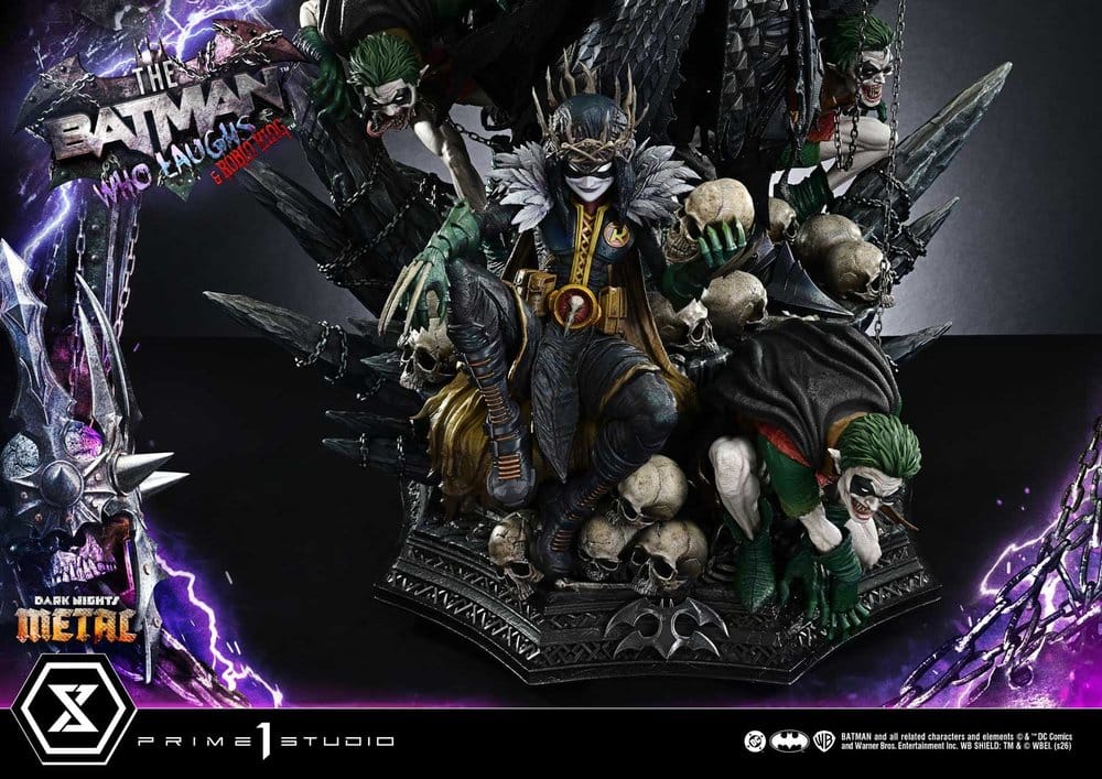 Ein Eroberer, der die Welt mit dem Bösen befleckt. Ein unschuldiger König, der sich am Bösen ergötzt. Die Resonanz ihres Wahnsinns – manifestiert in einer Höllenlandschaft im Maßstab 1:3. Aus „Dark Nights: Death Metal“, dem epischen Event, das den finalen Kampf um das Schicksal des DC-Universums in den frühen 2020er Jahren schildert, gesellen sich „Batman Who Laughs“ und „Robin King“ zur Museum Masterline. Nachdem er sich die Macht von Dr. Manhattan angeeignet hat, ist „The Batman Who Laughs“ zu einem fast gottgleichen Wesen aufgestiegen. Der Robin King, getrieben von seinen angeborenen Impulsen, schwelgt in Brutalität. Diese Statue im Maßstab 1:3 fängt diese beiden Superschurken ein, deren Beziehung über die eines Meisters und Dieners hinausgeht. Um ihre überwältigende Präsenz noch weiter zu betonen, wurde der höllische Sockel mit viel Liebe zum Detail und sorgfältiger Komposition gestaltet. „The Batman Who Laughs“ steht in einer gebieterischen Pose und verkörpert immense Macht und Ambition. Ein radikal neu interpretiertes Visier. Stahltöne mit einem subtilen Blaustich. Ein unheimlicher schwarzer Umhang, der bedrohlich weht. Jedes Element der Farbgebung und der Formgebung fügt sich zu einer dunklen und majestätischen Präsenz zusammen. Im Gegensatz dazu steht der Robin King in einer Pose, als würde er gespannt auf seine nächste Gräueltat warten. Sein listiges, furchtloses Grinsen – das sich von dem der Groblins unterscheidet – wurde aufwendig modelliert. In seinem kleinen Körper verbirgt sich pure, ungefilterte Boshaftigkeit, die sich in jedem feinen Detail ausdrückt. Zwei Formen des Wahnsinns, zum Leben erweckt in atemberaubenden dreidimensionalen Details – fügen Sie sie Ihrer DC-Sammlung hinzu.