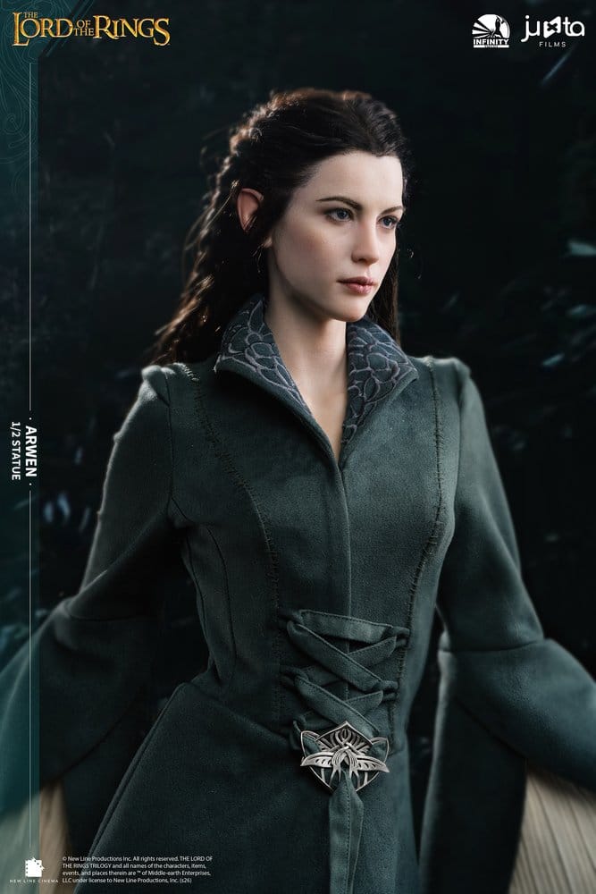 Arwen, mit vollem Namen Arwen Undómiel, ist eine Elfenfigur aus J.R.R. Tolkiens Roman Der Herr der Ringe. Dieses Meisterwerk stellt das ikonische Aussehen der Elfenprinzessin aus ihrem ersten Auftritt in den Filmen originalgetreu nach. Von ihrem Gesichtsausdruck bis zu ihrer Kleidung ist jedes Detail eine Hommage an die unsterbliche Liebe, die von Tolkien geschrieben wurde, und eine dreidimensionale Fortsetzung der Saga von Der Herr der Ringe.