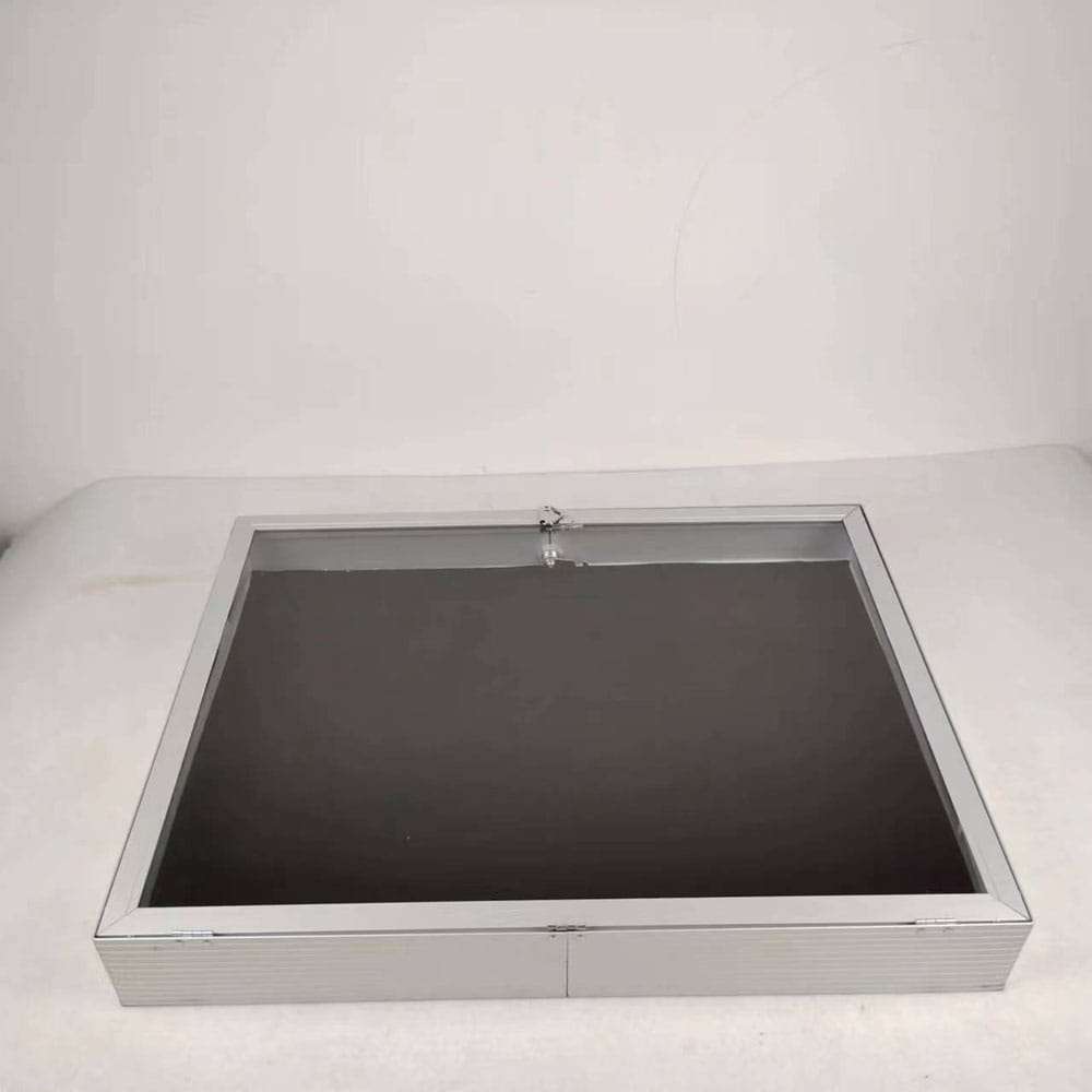 Bewahren Sie Ihre Wertsachen sicher und stilvoll auf mit der abschließbaren Aluminiumvitrine von EVORETRO. Mit einem robusten Aluminiumrahmen, einem transparenten Acryldeckel und einem sicheren Verschlusssystem ist diese elegante Vitrine perfekt für die professionelle Aufbewahrung von Sammlerstücken, Karten oder Schmuck.
