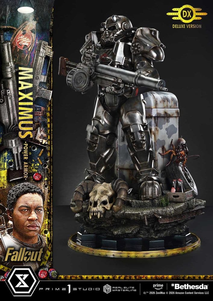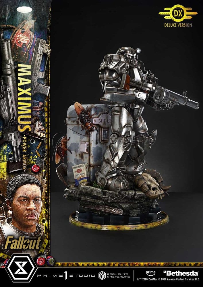 „Es ist die Pflicht eines Ritters, diese gefallene Welt zu verbessern.“ Eine realistische Darstellung eines Jugendlichen, der an Idealen festhält – verkörpert durch den T-60. „Fallout“ bleibt dem Ton der Originalspiele treu und entfaltet zugleich eine eigene Geschichte, die das Publikum weltweit mit ihrem postapokalyptischen Drama in ihren Bann zieht. Aus dieser Welt stößt die Maximus-Power-Rüstung zur Real Elite Masterline-Serie hinzu. Ein junger Soldat, der an den Idealen der Bruderschaft des Stahls festhält, um eine dunkle Vergangenheit auszulöschen. Einer der moralisch komplexen Protagonisten der Geschichte wird in der Power-Rüstung zum Leben erweckt, die er zum ersten Mal trug. Die imposante Gestalt und Pose des T-60-Modells, sein LED-beleuchteter Scheinwerfer und die symbolischen drei Kratzspuren wurden auf der Grundlage einer Analyse der Requisiten aus dem Film akribisch nachgebildet. Jedes Detail wurde originalgetreu im Maßstab 1:4 wiedergegeben. Ein gebleichter Deathclaw-Schädel. Krabbelnde Radroaches. Ein Milchautomat, der Kindheitserinnerungen weckt. Der speziell entworfene Sockel erinnert an die Ödnis, wie sie durch Maximus’ Augen gesehen wird. Jedes Element ist so gestaltet, dass es still seinen Teil der Geschichte erzählt. Zusätzliche Teile sind enthalten, um die Präsentation zu variieren. Der Kopf ohne Helm zeigt einen subtil wachsamen Ausdruck, wobei Falten und Narben bis ins kleinste Detail modelliert sind. Das Sturmgewehr, das mit Silbertönen unterschiedlicher Intensität überzogen ist, vermittelt ein Gefühl von gewaltiger Feuerkraft. Zusammen mit dem Kopfständer bieten diese Optionen den wahren Spaß an der Individualisierung. Nach dem Ghul und Lucy MacLean wird die Maximus-Kraftrüstung mit dem gleichen kompromisslosen Detailgrad zum Leben erweckt. Erleben Sie die realistische Darstellung eines Jugendlichen, der an seinen Idealen festhält, in Ihrer Sammlung.