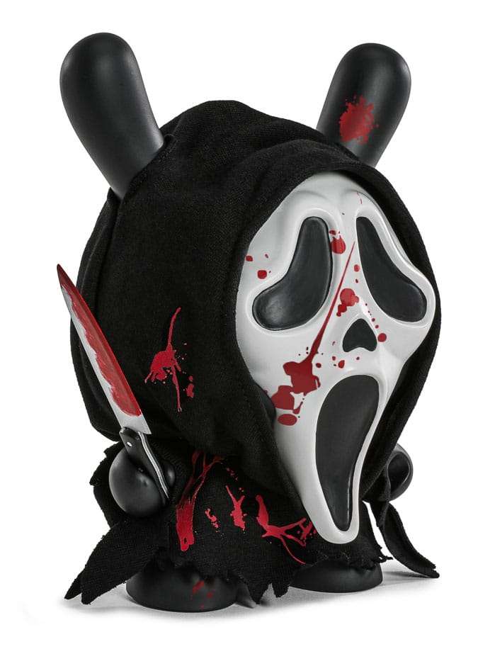 Aus Kidrobots „Dunny“-Reihe mit Art Toys aus Vinyl kommt diese coole Ghost Face Figur. Sie ist ca. 20 cm groß und trägt echte Stoffkleidung. Die Blutflecken leuchten im Dunkeln!