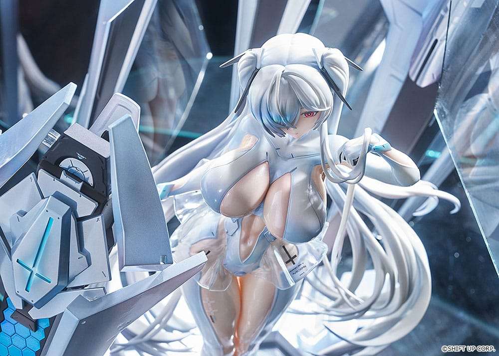 Zu ´Goddess of Victory: Nikke´ kommt diese detailreiche Statue. Die aus PVC gefertigte Statue ist ca. 26 cm groß und wird in einer bedruckten Fensterbox geliefert.