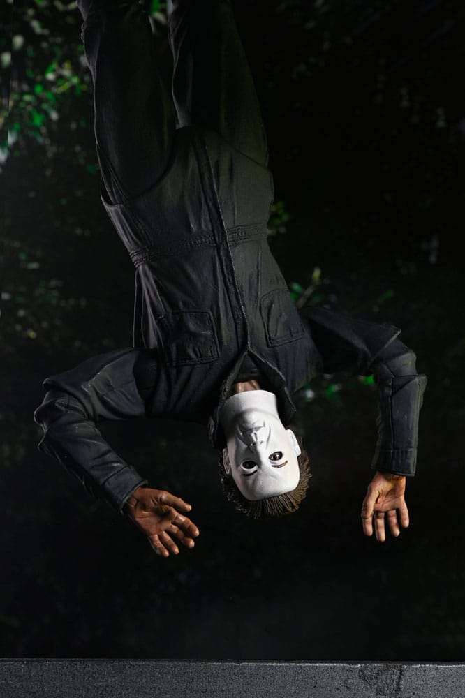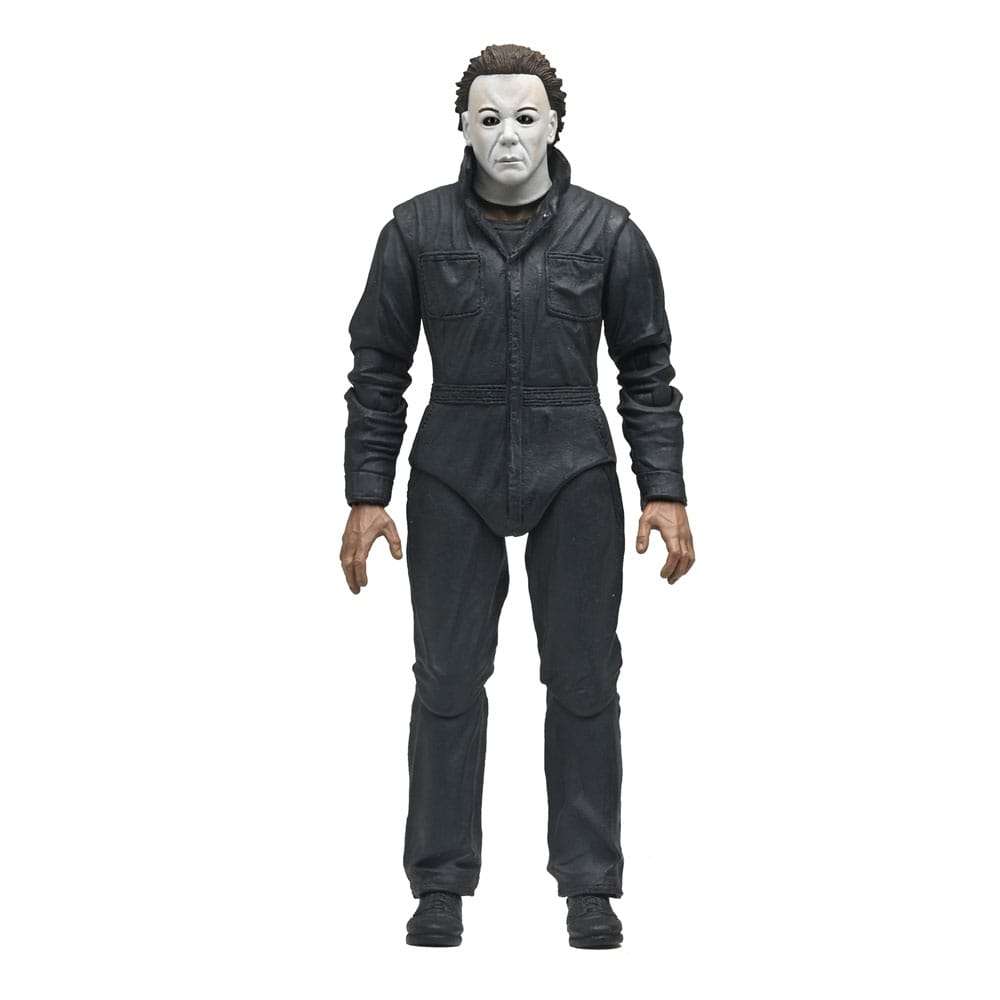 Detailreiche NECA Ultimate Michael Myers Figur aus Halloween: Resurrection. Ca. 18 cm groß, voll beweglich und mit viel Zubehör: austauschbare Köpfe und Hände, Messer, Kamera und Puppe. Präsentiert in einer sammelfreundlichen Box mit Klappfenster