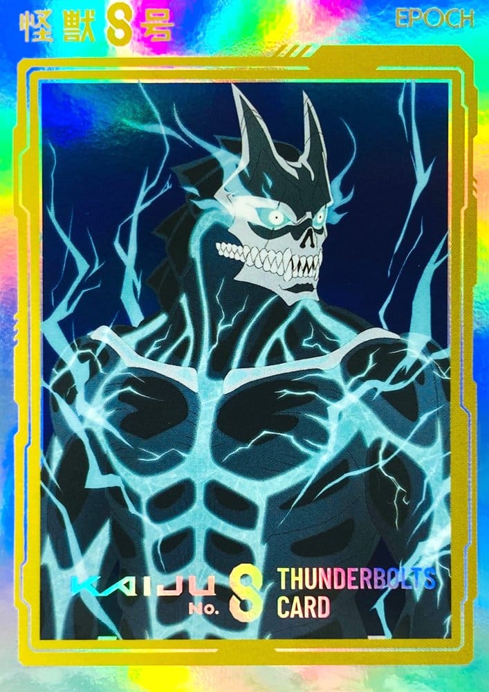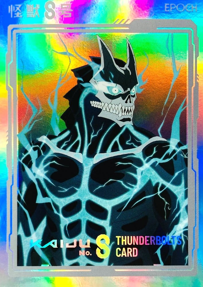 Tauche ein in die Welt von ‚Kaiju No. 8‘ mit dieser neuen Box von Epoch!  Jede Box enthält 12 Packs und jedes Pack enthält 5 Karten. Ein besonderes Highlight sind die neu gezeichneten Illustrationen, die entspannte Momente der Charaktere abseits der Kämpfe zeigen. Insgesamt gibt es 83 Karten zum sammeln. Sammler können sich auf seltene Karten freuen, darunter: – Kira-Karten (Hologrammkarten), die mit einer Rate von ca. 1 pro Packung erscheinen. – Insert-Karten wie ‚KAIJU NO. 8 THUNDERBOLTS‘ und ‚CHILL OUT‘ mit Folienprägung und Seriennummern. – Spezielle, von den Synchronsprechern foliengeprägte oder sogar direkt signierte Autogrammkarten.