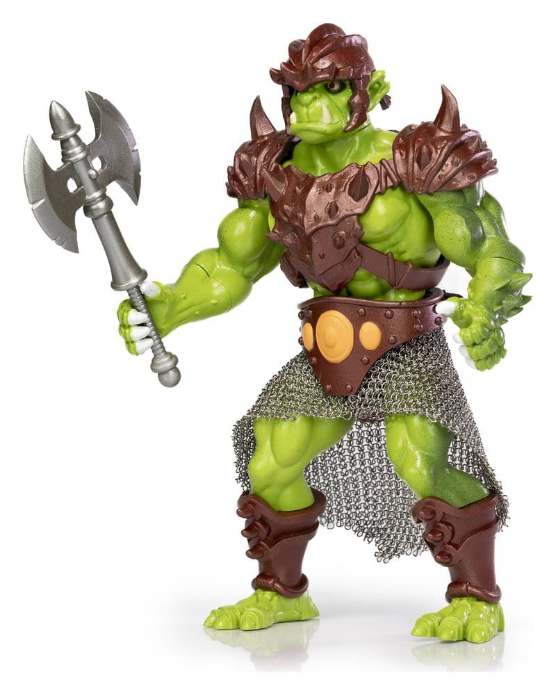 Ork-Meister des Gemetzels – Ein brutaler Häuptling in Oskuros Diensten, der auf einer Mission ist, das Feuer in der Höllenschmiede wiederherzustellen. Die Figur wird mit einer Streitaxt, einem Kettenhemdrock aus Stoff, einem abnehmbaren Gürtel, einer abnehmbaren Rüstung, einem abnehmbaren Helm und einer ausklappbaren Papiereinlage mit der illustrierten Geschichte der Figur geliefert.