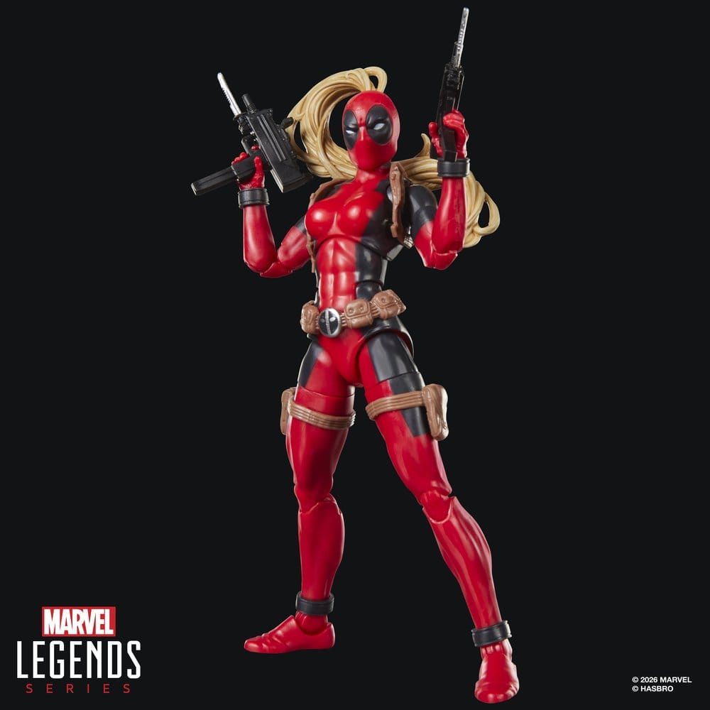 Mit Lady Deadpool aus der Hasbro Marvel Legends Series kann die Spannung und das Wunder des Marvel Universums in der eigenen Sammlung zum Ausdruck gebracht werden. Die Marvel Sammelfigur in einer Skala von 15 cm kommt im Look des Charakters aus den Marvel Deadpool Corps und Deadpool Comics. Die Lady Deadpool Action-Figur ist vollbeweglich, beeindruckt mit einem Premium-Design und verfügt über einen beweglichen Kopf sowie bewegliche Arme und Beine. Das Marvel Action-Figurenset enthält 5 Accessoires – 2 Schwerter, 2 Waffen und 1 Build-A-Figure Element für Marvel’s Box.
