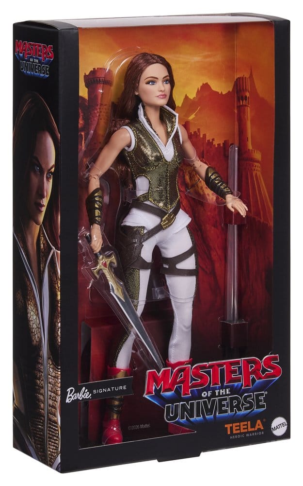 Teela, Anführerin der königlichen Garde, ergänzt die Barbie Signature-Kollektion und ist bereit, den Palast von Eternos zu verteidigen! Rechtzeitig zum kommenden Masters of the Universe Film, der im Juni 2026 erscheint, kann dieser legendäre Charakter als Spielzeug und Sammlerstück gefeiert werden. Diese Teela-Sammelfigur in hochwertiger Kampfausrüstung ist bereit, Prinz Adam zu beschützen – ausgestattet mit ihrem klassischen Jumpsuit, Stiefeln, Schwert und einer Rüstung mit goldenen Details. MOTU-Fans können auch die Barbie Signature He-Man Ken-Puppe sammeln, um das starke Duo zu vervollständigen. Inklusive Puppenständer und Echtheitszertifikat. Die Puppe kann nicht von allein stehen. Abweichungen in Farbe und Gestaltung vorbehalten.