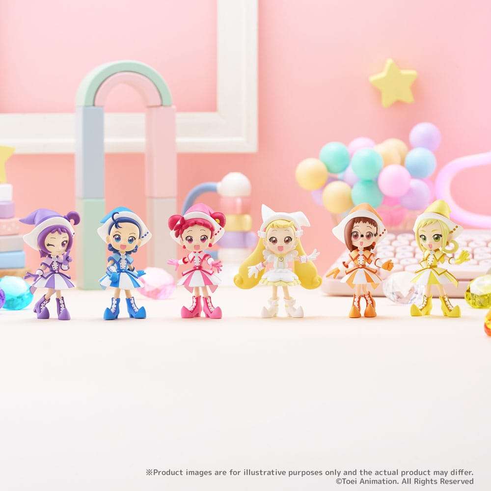 Zu „Ojamajo Doremi „Dokkan!““ kommt dieses Sortiment mit 6 detailreichen PVC Figuren. Sie sind ca. 9 cm groß und werden in einer Blind Box geliefert.