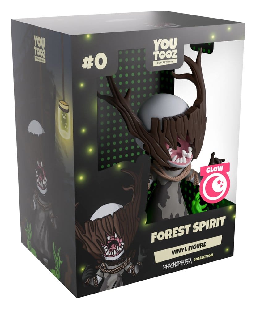 „Die verfluchte Höhle beginnt!“ Es ist Zeit für ein neues Event! Also solltest du besser anfangen, nach Hinweisen zu suchen, denn der schwer fassbare Waldgeist spukt in Youtooz! Er steht 5,3 Zoll groß da, mit dunklen Händen, die nach vorne zeigen, und einer gezackten Holzmaske, die sein Gesicht bedeckt, mit stacheligen Ästen, die von oben herausragen, um Hörner nachzuahmen. Scharfe Zähne säumen seinen furchterregenden offenen rosa Mund, während braune Seile seine Schultern, Arme und Beine umwickeln. Er trägt ein graues Kleid mit dunklen Flecken, die an beiden Seiten hochlaufen, während dunkle Äste seine Brust bedecken und sich von seinem Rücken krümmen. Ein Paar geisterhafter grüner Diener ruht zu seinen Füßen, mit langen Hörnern, die sich von der Oberseite ihrer Hasenköpfe krümmen. Die Außenseite ihrer Verpackung zeigt Holzanhänger, die vor schattigen Bäumen hängen, während die schwarze Innenseite mit pulsierenden grünen Punkten gefüllt ist. Die Schutzhülle zeigt sie dann, wie sie durch einen blass beleuchteten Wald pirschen, während ihre Figur durch das große, durchsichtige Fenster an der Vorderseite der Verpackung zu sehen ist. Dieses Sammlerstück wird in einer matten, geprägten Schutzhülle und einem maßgefertigten Kunststoffschutz für maximalen Schutz während des Versands geliefert. Über Phasmophobia Phasmophobia ist ein paranormales psychologisches Horrorspiel, das von Kinetic Games entwickelt und veröffentlicht wurde. Es ermöglicht den Spielern, allein oder in einem Team von bis zu 3 anderen zu arbeiten. Sie müssen Verträge abschließen und die Art des Geistes identifizieren, der an jedem Ort spukt, während sie ihre geistige Gesundheit im Auge behalten und nicht sterben!