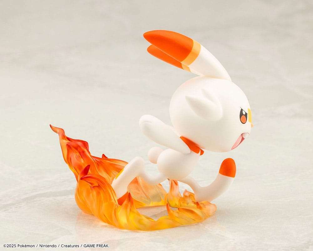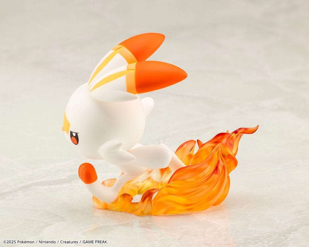 Der energiegeladene Scorbunny, der aussieht, als könnte er jeden Moment losschießen, hat auch eine dynamische Pose! Das Feuer um seine Füße ist mit klaren Teilen dargestellt.