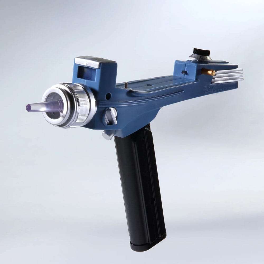 Der Phaser Typ 2 war die Pistolenversion dieser klassischen Waffe. Der kleinere Phaser Typ 1 wird oben aufgesteckt und enthält die Leistungseinstellungen. Durch Drehen des Drehknopfs an der Spielzeugversion ändern sich die Soundeffekte von geringer Intensität (Betäubung oder Hitze) bis hin zur selten gesehenen (oder gehörten) Überlastung. Der Abzug aktiviert das Licht an der Vorderseite.