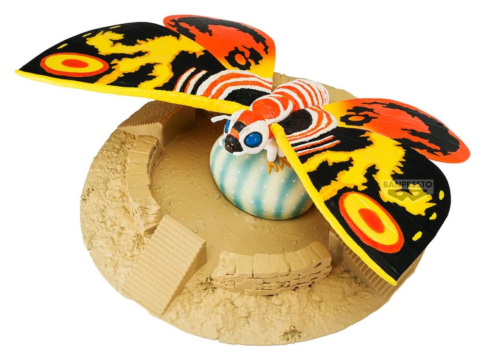 Dies ist eine PVC-Figur aus Banprestros Toho Art Vignette-Linie, basierend auf der Lizenz Rebirth of Mothra. Sie zeigt den Charakter Mothra (1996) und ist ca. 14 cm breit und 5 cm hoch.