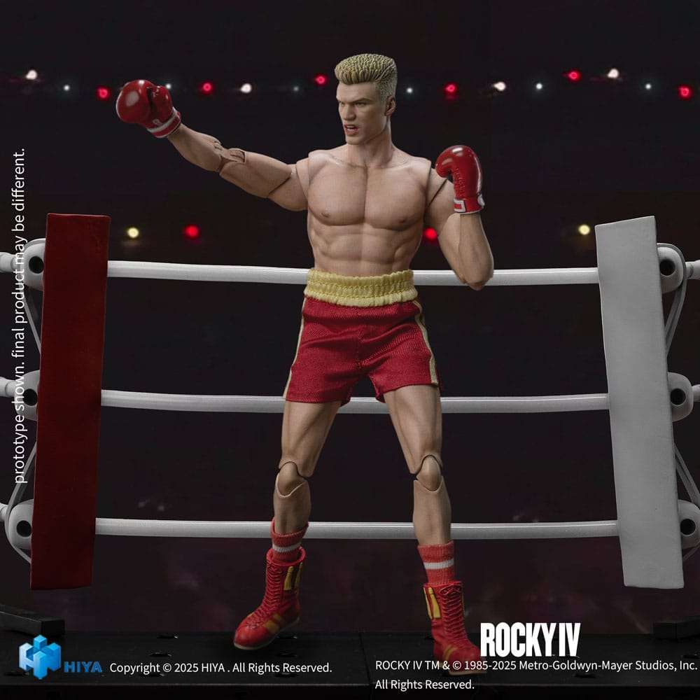 Zu „Rocky IV “ kommt diese detailreiche Actionfigur aus ABS und PVC im Maßstab 1:12. Sie ist ca. 16 cm groß und wird mit jeder Menge Zubehör in einer Fensterbox geliefert.