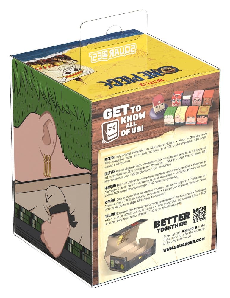 Vergesst nicht, eure ONE PIECE-Sammlung mit dem passenden „Wooden Chest“ Collectors Case zu vervollständigen – der perfekten Box zur Aufbewahrung von bis zu acht Squaroes!