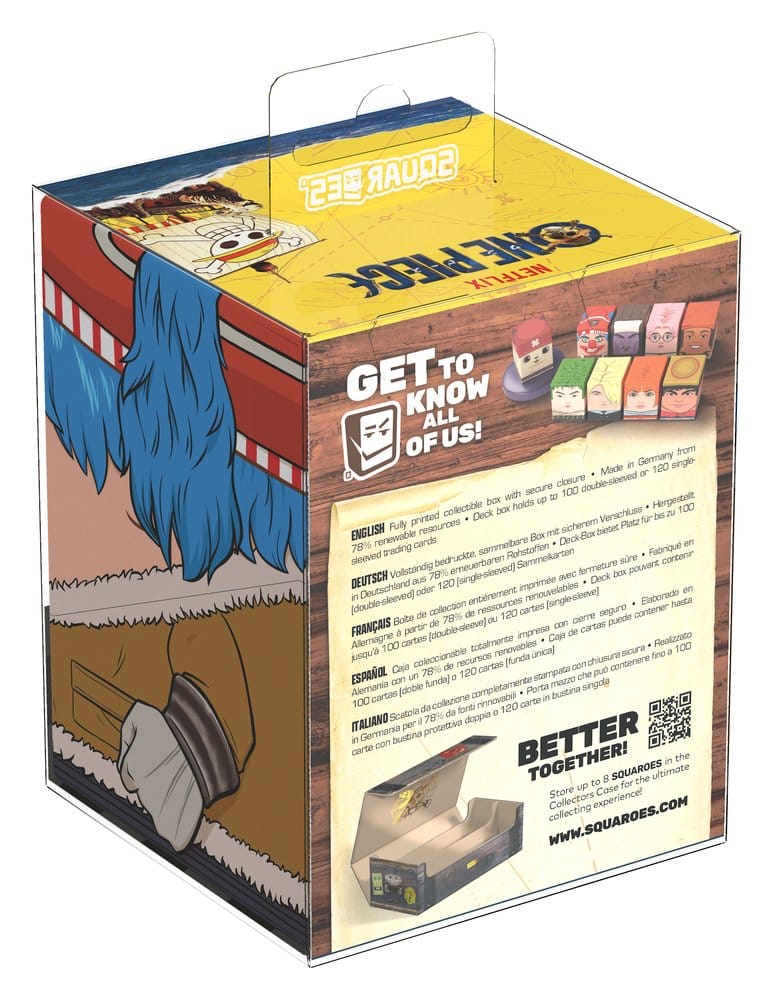 Vergesst nicht, eure ONE PIECE-Sammlung mit dem passenden „Wooden Chest“ Collectors Case zu vervollständigen – der perfekten Box zur Aufbewahrung von bis zu acht Squaroes!