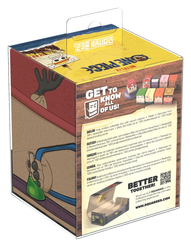 Vergesst nicht, eure ONE PIECE-Sammlung mit dem passenden „Wooden Chest“ Collectors Case zu vervollständigen – der perfekten Box zur Aufbewahrung von bis zu acht Squaroes!