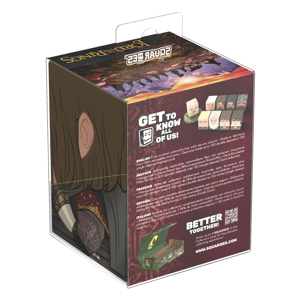 Sammelbare Box zur Aufbewahrung von TCG-Decks, Tabletop-Zubehör und/oder Sammlerstücken. Der Boromir Squaroe aus der The Lord of the Rings-Edition bietet als Deck-Box benutzt Platz für bis zu 100 Spielkarten in doppelter Schutzhülle. Squaroes werden aus 78% erneuerbaren Rohstoffen hergestellt und passen perfekt in das separat erhältliche Collectors Case.