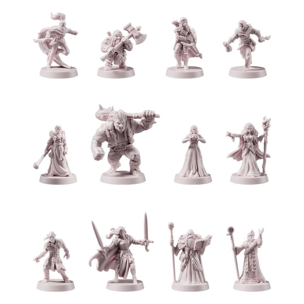 Enthält ein großes Spielbrett, 12 Spielfiguren, 12 Charakterkarten, 100 Abenteuerkarten, 24 Zauberspruchkarten, 18 Kaufkarten, 4 Talismankarten, 1 Krötenkarte, 6 Krötenmarker, 114 Spielmarker: 38 rote Stärkemarker (6 große, 32 kleine), 38 blaue Talentmarker (6 große, 32 kleine), 38 grüne Lebenspunktemarker (6 große, 32 kleine), 38 Schicksalsmarker, 12 Gesinnungsmarker, 30 Goldstücke, 3 sechsseitige Würfel und Regelheft.