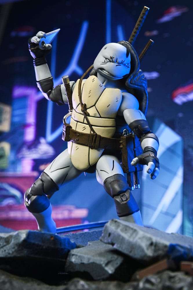 Zu „Teenage Mutant Ninja Turtles: The Last Ronin“ kommt diese detailreiche Actionfigur. Sie ist ca. 19 cm groß und wird zusammen mit weiterem Zubehör in einer Fensterbox geliefert.