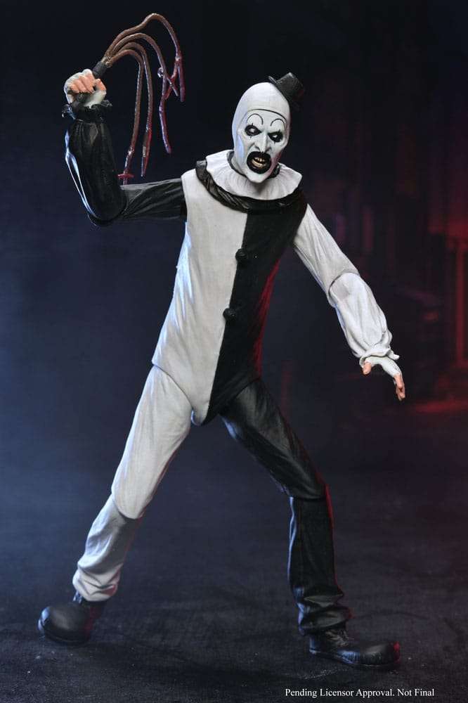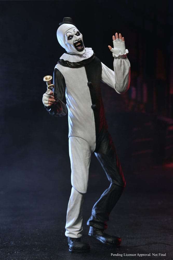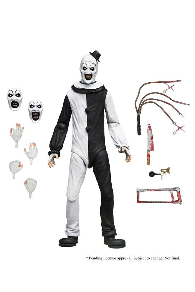Zur Horrorserie „Terrifier“ kommt diese detailreiche Actionfigur von Pennywise. Die Figur ist ca. 45 cm groß und wird mit weiterem Zubehör und Austauschteilen in einer Fensterbox geliefert.