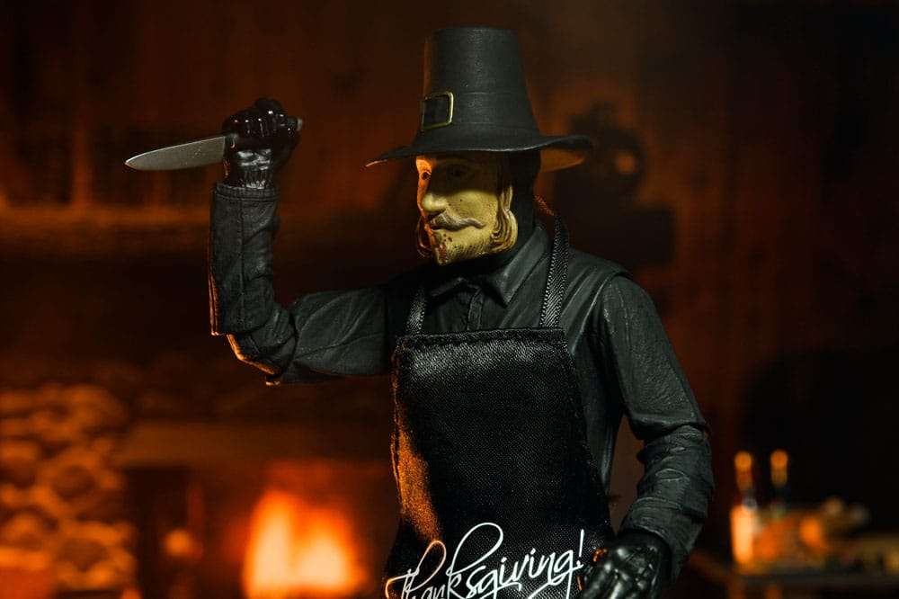 Zum Horror-Slasher „Thanksgiving“ kommt diese detailreiche Actionfigur. Die Figur ist ca. 18 cm groß und wird mit jeder Menge Zubehör und Austauschteilen in einer Fensterbox geliefert.
