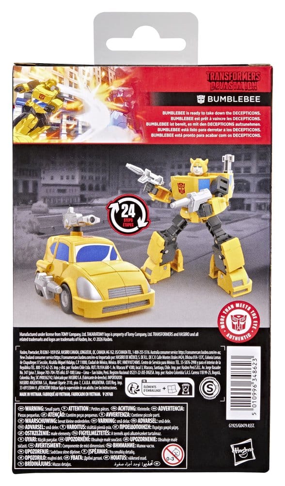 Erlebe die epische Action des Videospiels Transformers: Devastation mit dem Transformers Studio Series Bumblebee Spielzeug! Die 10,5 cm große Figur lässt sich in 24 Schritten von einer Roboter-Actionfigur in ein Spielzeugauto verwandeln. Mit vom Spiel inspirierten Details, aufwendiger Beweglichkeit und anbringbarem Blaster-Zubehör ist diese Bumblebee-Actionfigur eine erstaunliche Ergänzung für jede Sammlung. Halte Ausschau nach weiteren Transformers-Sammelspielzeugen (separat erhältlich, je nach Verfügbarkeit) mit Lieblingscharakteren wie Optimus Prime, Megatron und mehr, um eine Aufstellung zu schaffen, die mehr ist, als man auf den ersten Blick sieht.