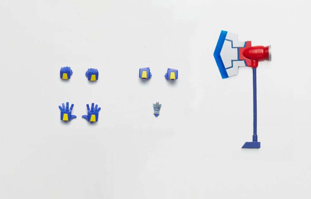 Die voll bewegliche Figur ist ca. 16 cm groß und wird mit weiterem Zubehör und Austauschteilen in einer bedruckten Box geliefert.