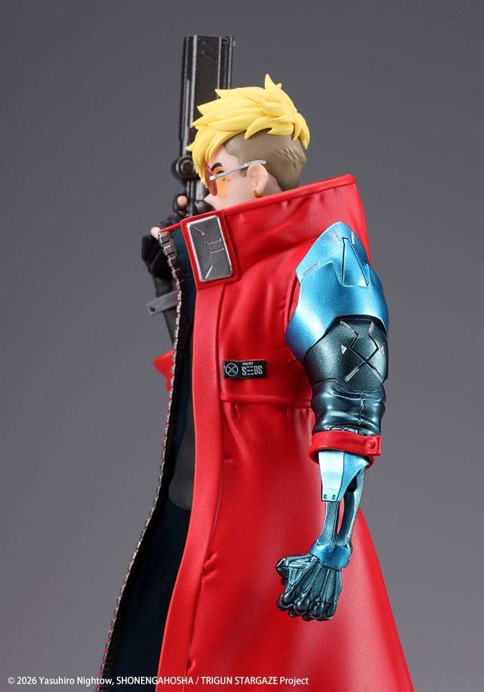 Zu „Trigun Stampede“ kommt diese coole Statue. Die aus PVC gefertigte Statue ist ca. 22 cm groß und wird in einer Fensterbox geliefert.