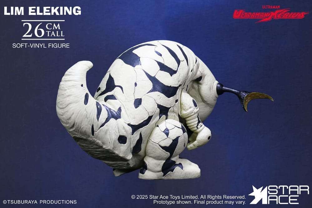 Wir präsentieren den neuen 26 cm Soft Vinyl Lim Eleking von Star Ace. Tauchen Sie ein in die Welt der Ultraman mit diesem sorgfältig gestalteten Sammlerstück, das eine Hommage an die geliebte Filmreihe ist.