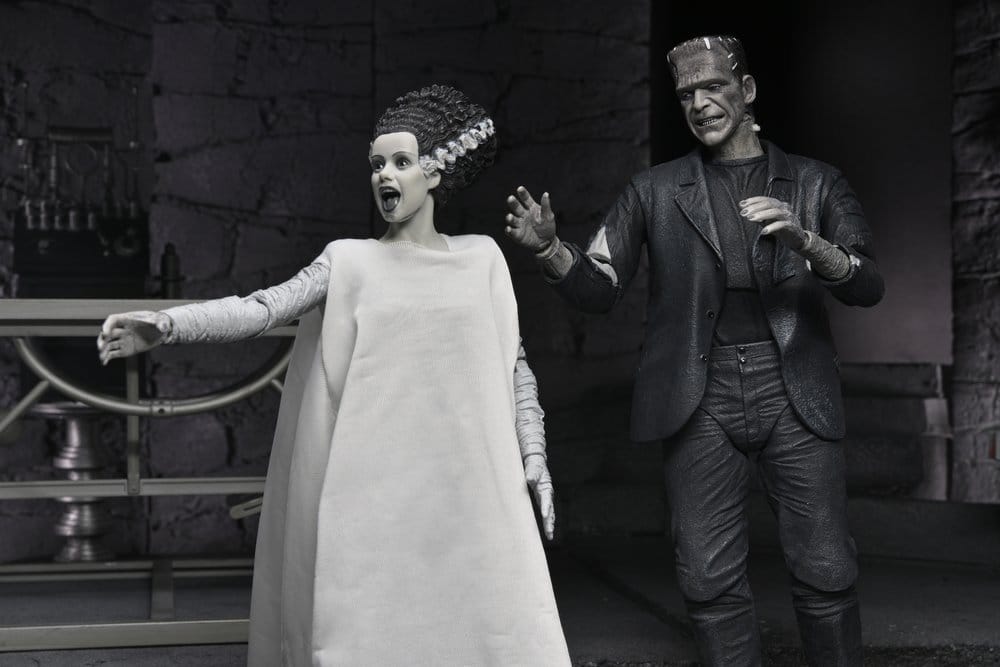 „Wir gehören zu den Toten…“ Feiern Sie über 90 Jahre Horror und verdammte Romanze mit dieser eindringlichen Hommage an den klassischen Universal Monsters Film, Frankensteins Braut! NECA präsentiert stolz ein Gedenk-Actionfiguren-2er-Pack, das Frankensteins Monster und seine Braut in einem elektrisierenden Sammlerset vereint. Als das Monster seine wahre Liebe trifft und feststellt, dass seine Gefühle nicht erwidert werden, legt er den Schalter um, der das Schloss implodieren lässt – und beendet ihre tragische Liebesgeschichte, bevor sie überhaupt beginnt. Mit schwarz-weißer Deko, als wären sie gerade der Leinwand entstiegen, enthalten diese 7-Zoll-Figuren mehrere austauschbare Köpfe und Hände sowie einen Stoffmantel für die Braut. Holen Sie sich dieses berüchtigte Paar nach Hause, endlich zusammen in einer limitierten Fensterbox-Verpackung mit Schuber. Größe: 17,8 cm