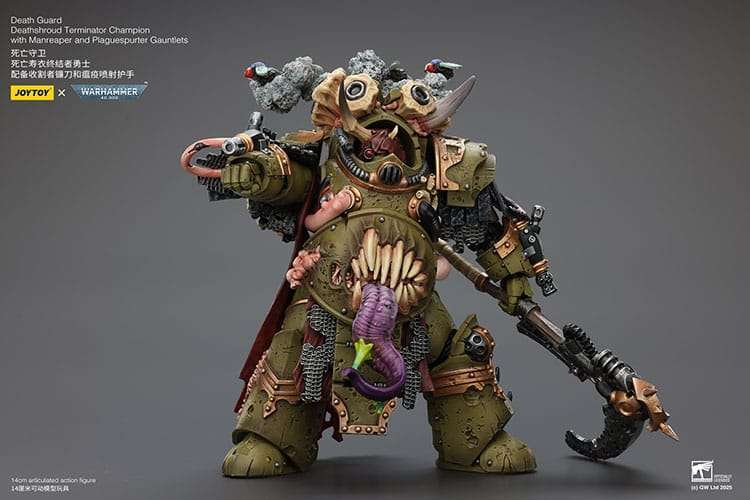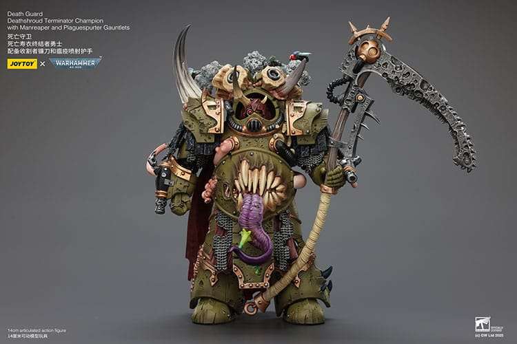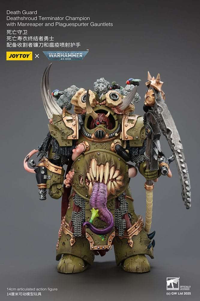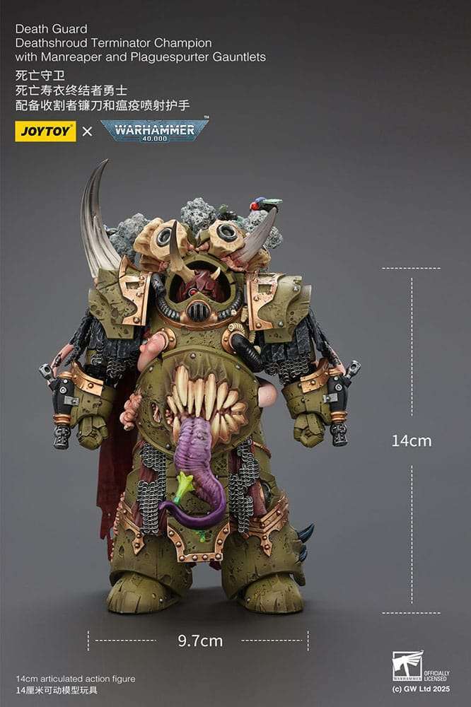 Zum Tabletop-Spiel „Warhammer 40k“ kommt diese detailreiche, bewegliche Actionfigur. Sie ist ca. 14 cm groß und wird mit weiterem Zubehör geliefert.